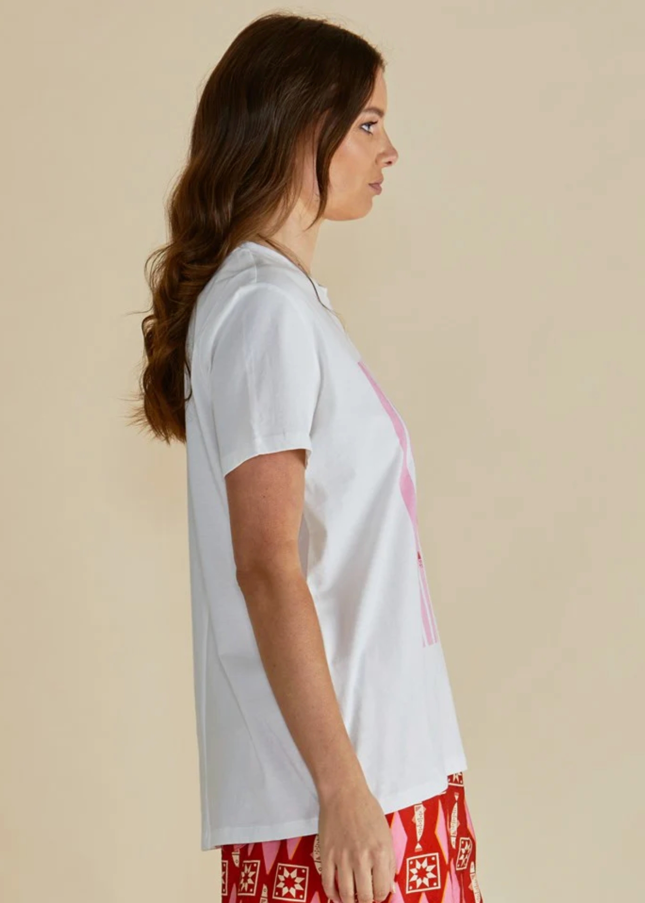 The Ellia Crew Tee is your classic go-to for easy, everyday styling. Crafted from soft cotton jersey, it features a clean crew neckline, relaxed drop-shoulder sleeves and a subtle high-low hem that creates an effortlessly laid-back silhouette. Comfortable, polished and endlessly versatile, it’s a timeless transeasonal staple.