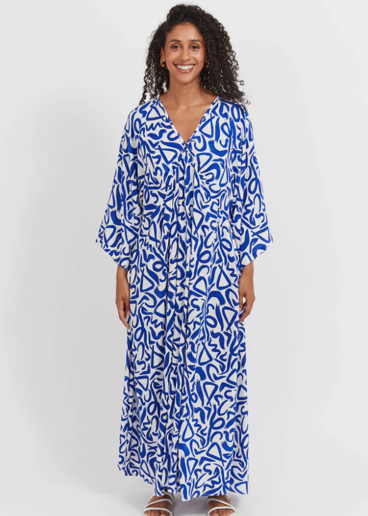 The Bahama Maxi Dress captures effortless resort glamour for sun-soaked days and balmy evenings. Its relaxed, free-flowing silhouette is framed by a soft V-neckline with a hook-and-eye closure, an under-bust seam for subtle shape, and wide 3/4 raglan sleeves. A sweeping maxi length and discreet side pockets bring comfort to every step.