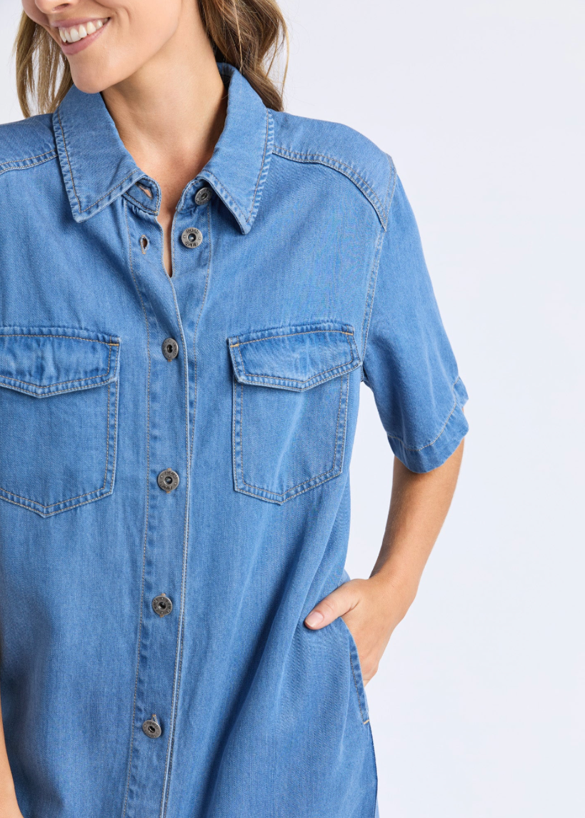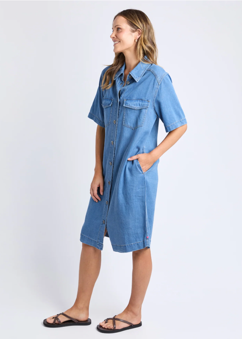 Cora Denim Dress Mid Blue Wash