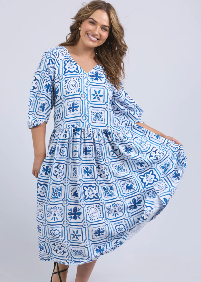 Dolice Tile Midi Dress Ocean Tile Print
