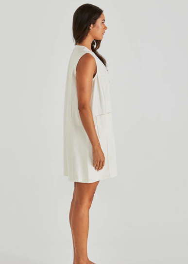 Sabine Denim Vest Dress Parchment Wash Cream | Abbey Road Kaikoura