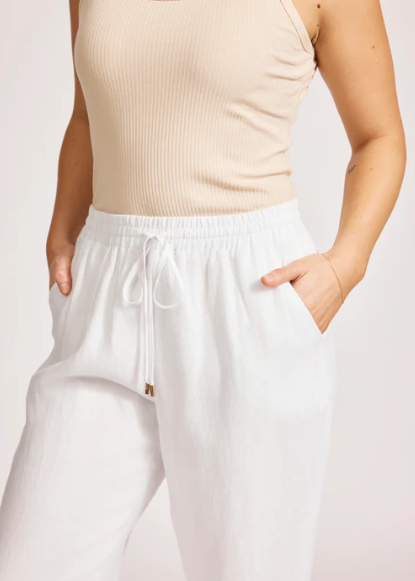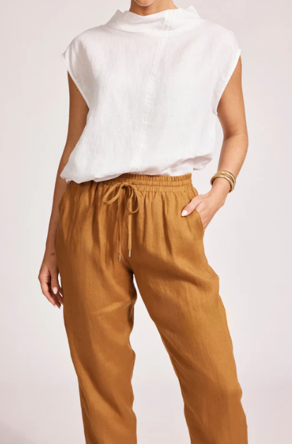 Effortless and comfortable, this 100% linen jogger-style pant is made for everyday dressing. Designed with an elastic drawstring waist, tapered leg, elastic at the back cuffs, and practical side pockets. Wear it with a tee for laid-back style or a linen top for an easy summer look.