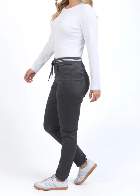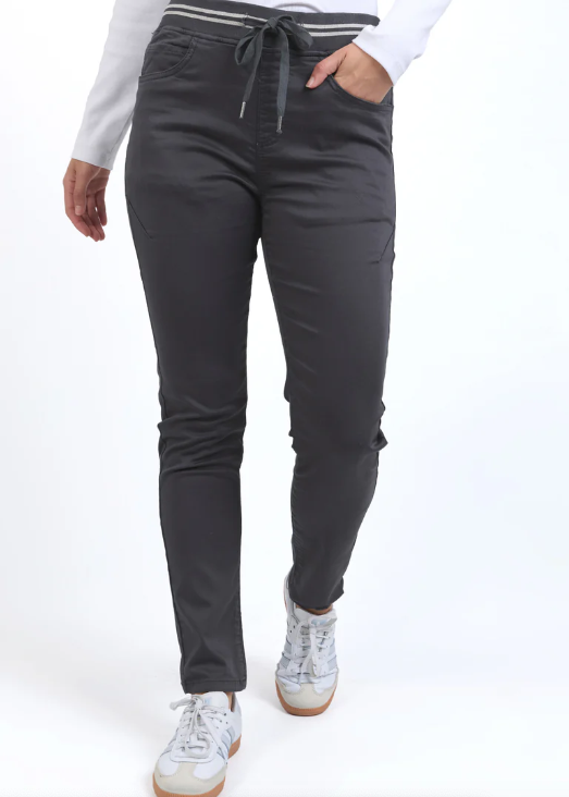 The Sylvia Jogger is a comfy pair of relaxed pants. Made from a super soft, two-way stretch cotton drill in a midweight fabric with 2 side pockets, 2 back pockets and an elastic waistline with soft drawstring