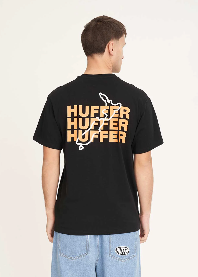 190gsm, 100% cotton with a chunky 20mm neck rib and that classic Huffer fit, it’s made to hold its shape and rep your scene. Finished with a bold Huffer placement screenprint, this is your everyday essential—levelled up and ready to flex.