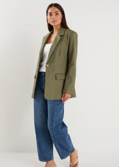 Tailored yet relaxed, the Dock Khaki Ramie Rolled Sleeve Blazer features a single button front and soft natural fibres. Fully lined with subtle striped cuffs, it’s designed for versatile, cross-seasonal layering.