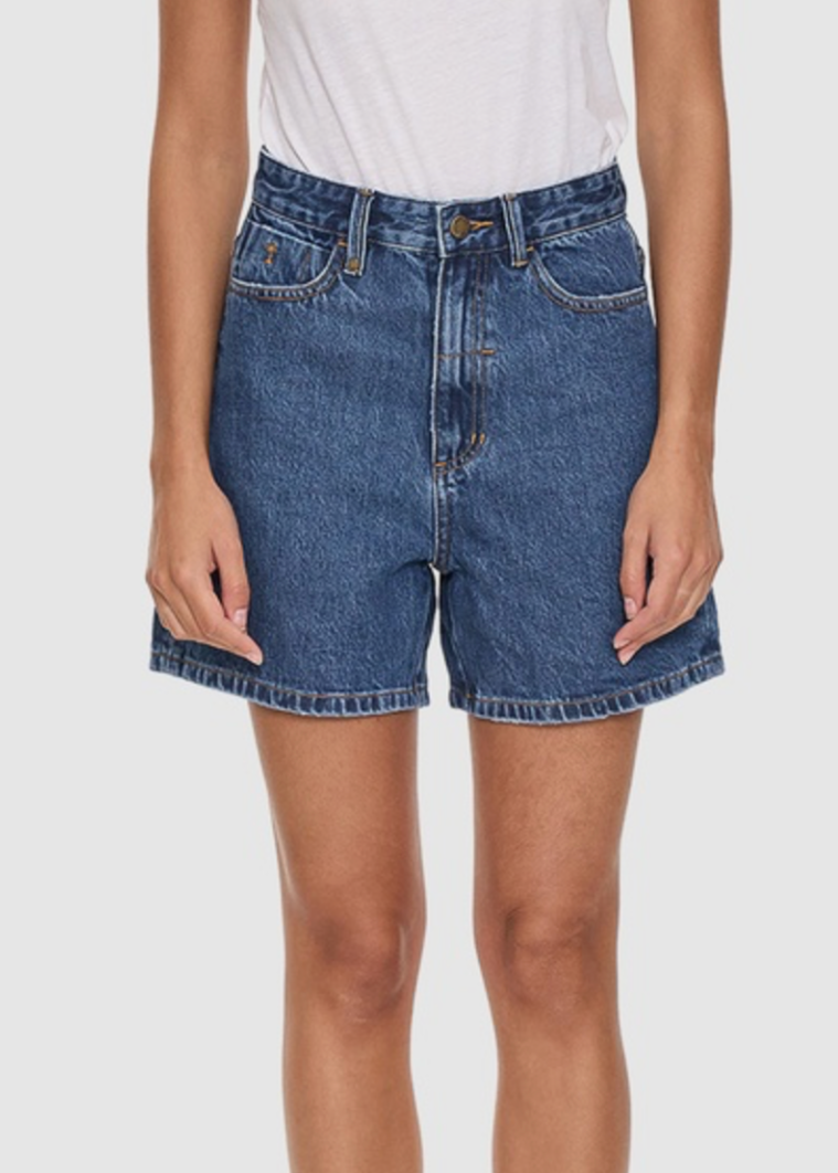 Cool, clean, and made to move, the Koko Short is a no-brainer for spring days and long summer nights. Crafted from premium midweight denim, these high-waisted shorts offer just the right amount of structure without sacrificing comfort. A softly faded wash, wide hems, and classic 5-pocket styling nod to true vintage denim, while the modern fit keeps things effortlessly street-ready. Pair them with cropped tanks or oversized graphic tees for an easy, everyday look.