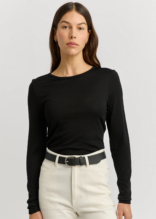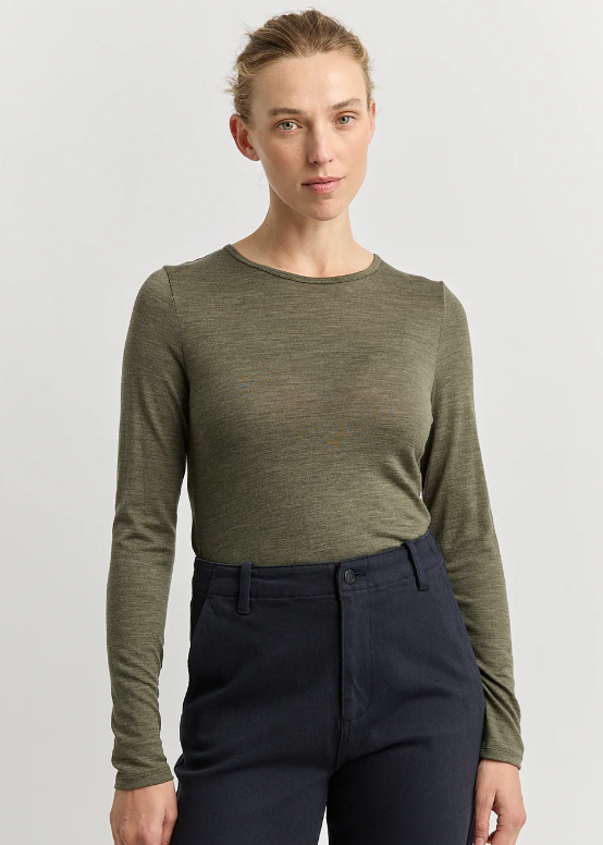 The Crew Merino Tee from Toorallie features a slim fit and long sleeves. Designed to fit close to the body and be worn as a versatile and breathable base layer. Made from 100% Australian Merino Wool.