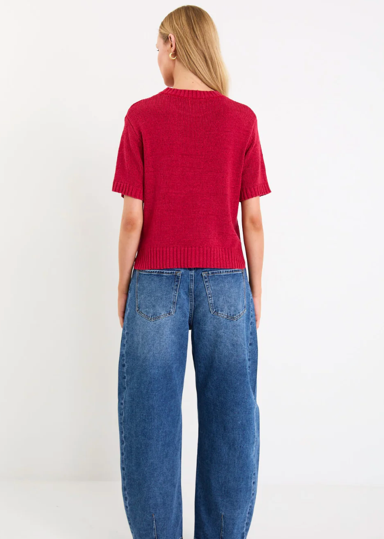 The Loveable Tape Yarn Knit Tee is a vibrant knit tee perfect for everyday wear. Designed in a soft tape-yarn knit, it has a relaxed drape, subtle side splits and a classic crew neckline that makes styling effortless from weekday to weekend.