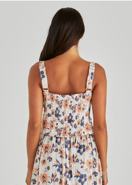 The Luca Crop Top features adjustable straps and embroidered floral fabric. A shirred back panel keeps things comfy, while the unlined finish makes it feel light and fresh. Pair it with denim for the perfect summer day look.